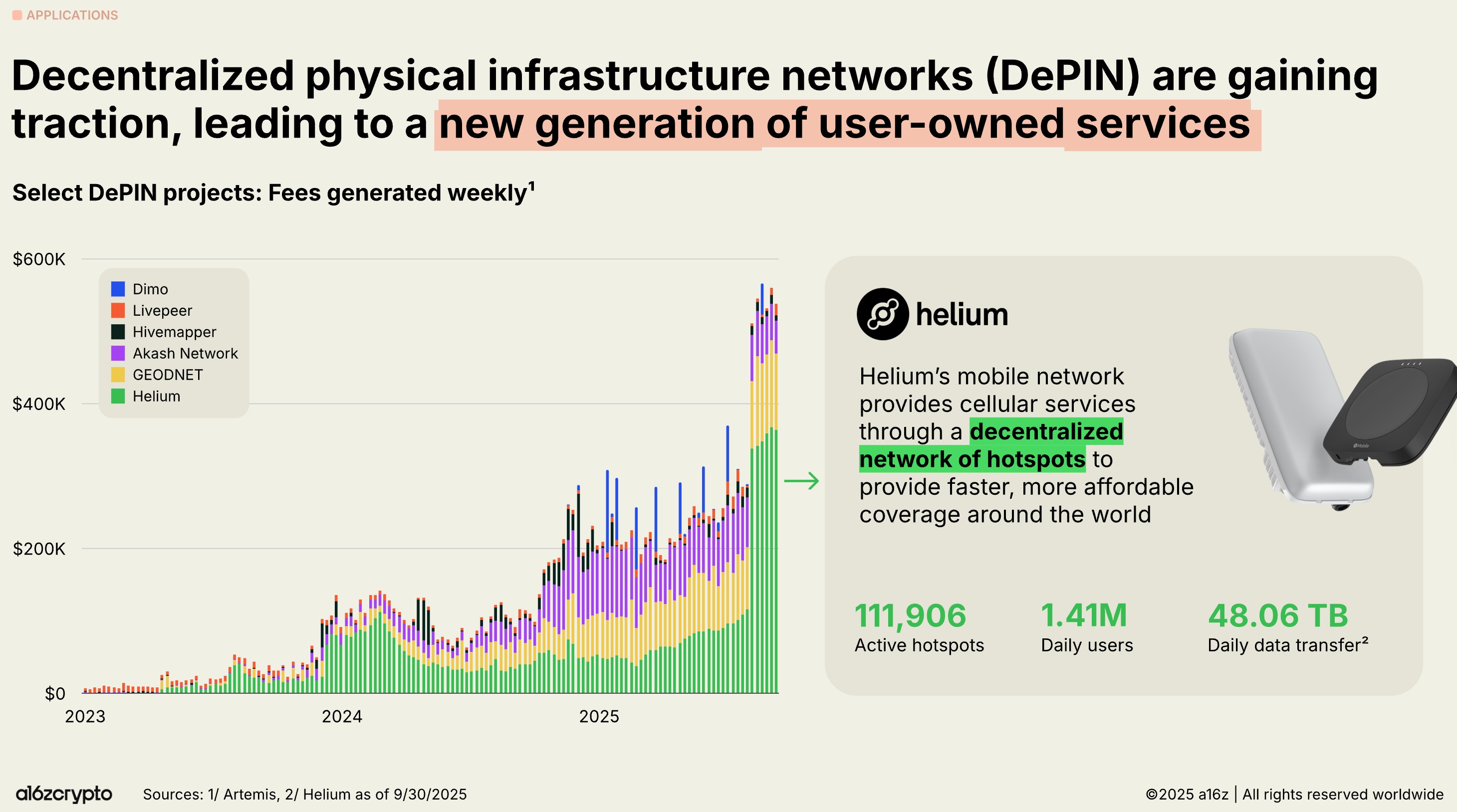 I’m particularly interested in DePIN (Decentralized Physical Infrastructure) projects like Helium, which is building a decentralized network for IoT and mobile devices. What’s fascinating here is that the network creation itself is decentralized. Users buy and deploy hardware, and in return, they’re rewarded for providing network coverage AND network traffic.