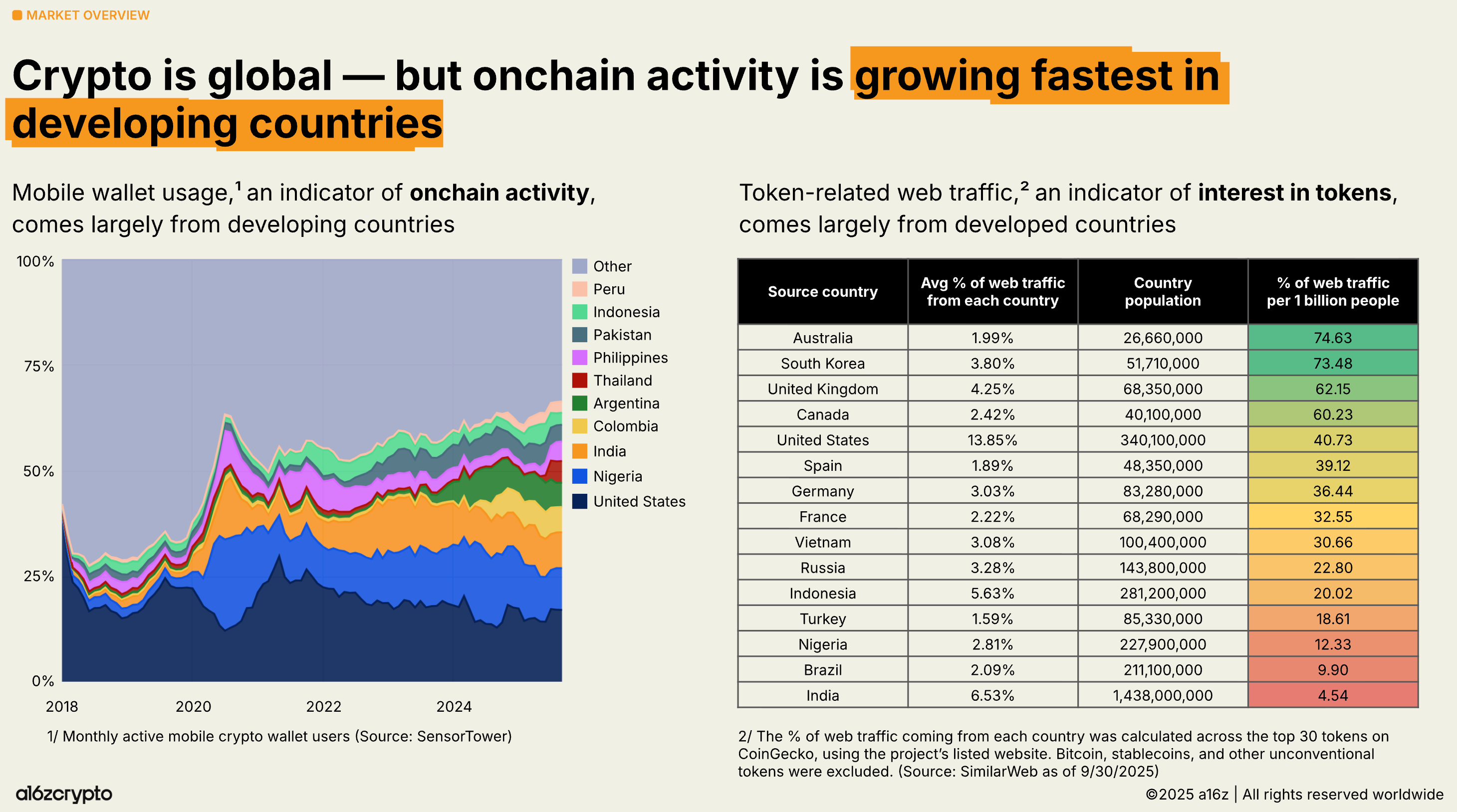 We often hear that Bitcoin was supposed to be a refuge, a counter-cyclical asset. But is that really true? The most telling evidence comes from crypto wallet usage, which is exploding not in the world’s financial capitals but in places like India, Argentina, Nigeria, and the Philippines.